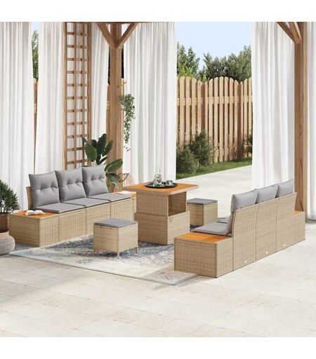 vidaXL Tuin Sofa Set met kussen 9 pcs Beige Poly riet