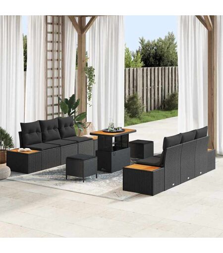 vidaXL Tuin Sofa Set met kussen 9 pcs Zwart Poly riet