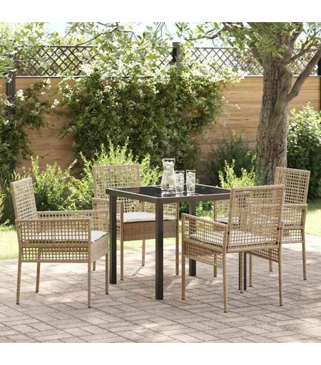 vidaXL Tuin Eetset met kussen 5 pcs Beige Poly riet