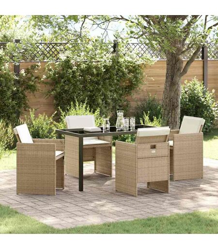 vidaXL Tuin Eetset met kussen 5 pcs Beige Poly riet