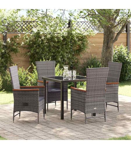 vidaXL Tuin Eetset met kussen 5 pcs Grijs Poly riet