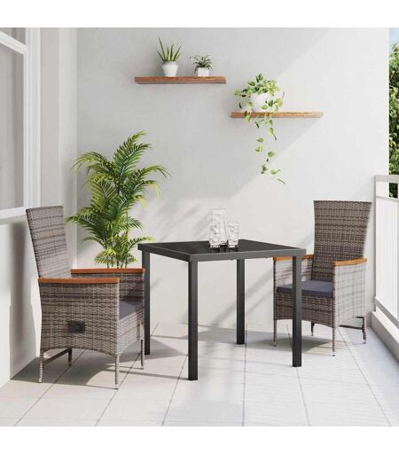 vidaXL Tuin Eetset met kussen 3 pcs Grijs Poly riet