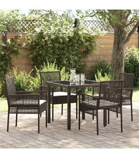 vidaXL Tuin Eetset met kussen 5 pcs Bruin Poly riet