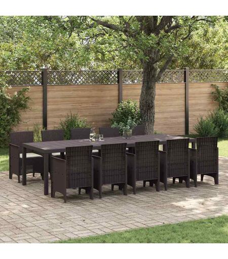 vidaXL Tuin Eetset met kussen 11 pcs Bruin en Crème Rattan