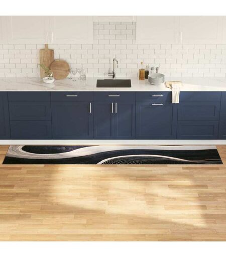 vidaXL Keuken Vloerkleed Art Deco Zwart 300 x 60 cm Fluweel