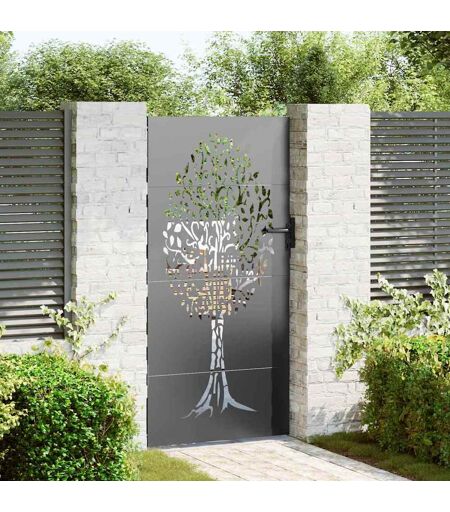 vidaXL Tuinpoort, Tuinpoort 85x75 cm Corten Staal Boomontwerp Zwart