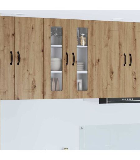 Deze wandkast geeft je keuken een modern tintje en biedt tegelijkertijd genoeg opbergruimte om alles netjes te houden. De strakke lijnen en het witte frame zorgen voor een minimalistische en functionele look, waardoor hij bij verschillende keukenstijlen past. Perfect voor het opbergen van servies, ...