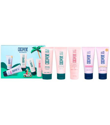 Gloeien, baby! Deze uitgebreide set bevat al je favoriete Coco & Eve producten - hoofdhuid scrub, haarmasker en lichaamsverzorging om je van top tot teen te verwennen en te zorgen voor gezond, gehydrateerd haar en een zijdezacht lichaam. Actieve, tropische formules die voeden, gladmaken en hydrateren. Onze cult haarmaskers Like A Virgin en Sweet Repair herstellen het haar van binnenuit en verbeteren de textuur en glans in één. Deep Clean Scalp Scrub revitaliseert en vernieuwt de hoofdhuid en creëert een gezonde omgeving voor haargroei. Bali Buffing Sugar en Whipped Body Cream voeden je lichaam en maken je huid zacht en gehydrateerd.Inhoud:SUPER VERZORGEND COCONUT & FIG HAIR MASQUE (60ml)SCHOONMAKEN VAN DE SCALP (50ml)HERSTELLEND HAARMASK (60ml)BALI BUFFING SUGAR (60g)GEWOPPELD BADY CREAM (TROPISCHE MANGO GEUR) (60ml)Like A Virgin Hair Masque herstelt het haar van binnenuit en verbetert de textuur en glans.Deep Clean Scalp Scrub revitaliseert en vernieuwt de hoofdhuid door olie, een schilferige hoofdhuid en productophopingen tegen te gaan. Versterkt de haarzakjes en creëert een gezonde omgeving voor haargroei.Sweet Repair Hair Mask verbetert de haarsterkte met 85% en vermindert haarbeschadiging tot 65%** (*gebaseerd op instrumentele tests met veganistische keratine, **gebaseerd op instrumentele tests met hyaluronzuur).Bali Buffing Sugar verwijdert dode huidcellen voor een gladdere, egalere huidtextuur, stimuleert de doorbloeding en vermindert pigmentatie om striae te minimaliseren.Whipped Body Cream verzacht de huid, terwijl aminozuren cellulitis bestrijden en de huid van binnenuit hydrateren en verstevigen om haar soepeler te maken.Hoe te gebruiken:SUPER NOURISHING COCONUT & FIG HAIR MASQUE: Shampoo, verdeel het product gelijkmatig door handdoekdroog haar. 5-10 minuten laten inwerken en uitspoelen.DEEP CLEAN SCALP SCRUB: aanbrengen op vochtig haar voor het wassen, in secties verdelen en direct op de hoofdhuid langs de haarlijn aanbrengen. Herhaal dit proces over het hele hoofd. Masseer in de hoofdhuid. Spoel grondig met warm water en shampoo.REPAIRING & RESTORING HAIR MASK: Shampoo zoals gewoonlijk en breng vervolgens een royale hoeveelheid product gelijkmatig aan op de lengten en punten van handdoekdroog haar. 5 tot 10 minuten laten inwerken en uitspoelen met warm water. Gebruik 1-2 keer per week.BALI BUFFING SUGAR: Masseer een flinke lepel Bali Buffing Sugar met ronddraaiende bewegingen in de huid, beginnend bij de tenen en werk zo omhoog naar de nek. Besteed speciale aandacht aan bijzonder droge plekken zoals enkels, knieën en ellebogen. Afspoelen met warm water. Gebruik de crème in combinatie met de lichaamsproducten van Glow Figure voor het beste resultaat. WHIPPED BODY CREAM (TROPICAL MANGO SCENT): Masseer de huid rijkelijk in met ronddraaiende bewegingen, met speciale aandacht voor de dijen en billen. Gebruik de crème in combinatie met de glow figure bodyproducten voor een optimaal resultaat. ...