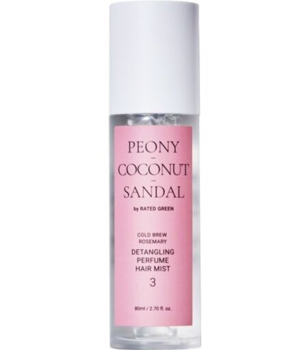 Rated Green Cold Brew Rosemary Detangling Perfume Hair Mist 80mL Peony Coconut Sandal