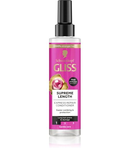 Schwarzkopf Gliss Supreme Length, 200 ml, Leave-in conditioners voor Vrouwen , De leave-in conditioner Schwarzkopf Gliss Supreme Length zorgt voor een onmiddellijke dosis intensieve hydratatie en voeding. Het product geeft je haar na het wassen alles wat het nodig heeft, zonder dat je meer tijd in de badkamer hoeft door te brengen dan nodig. Het maakt je haar glad, zorgt voor een natuurlijke glans en herstelt de structuur. Het bevordert de regeneratie van je haar en maakt het beter doorkambaar. Dit alles makkelijk, snel en zonder dat er gespoeld hoeft te worden. Breng het simpelweg aan, masseer het in, kam je haar door indien nodig, en geniet van de prachtige, gezonde uitstraling van je haar. Probeer deze leave-in conditioner en ontdek een eenvoudige en snelle manier om je haar te laten regenereren en nog vele andere voordelen. Kenmerken: versterkt de haarvezels beschermt het haar tegen beschadiging vergemakkelijkt het uitkammen en de daaropvolgende aanpassing geeft je haar glans Hoe te gebruiken: Spuit een redelijke hoeveelheid van het product op je vochtige of handdoekdroge haar en wrijf het met je handen in. Spoel niet af en behandel verder op gebruikelijke manier. ...