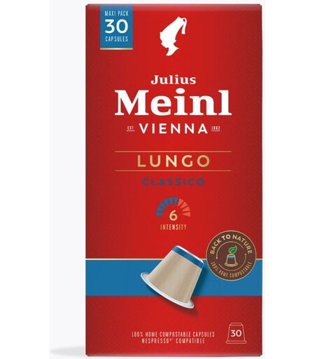 Lungo Classico. Julius Meinl is het Oostenrijkse handelsmerk voor koffie en houdt al sinds 1862 de waarden van de Weense koffiehuiscultuur hoog. Het bedrijf is ook trots op zijn vele duurzaamheidsprogramma's, wat betekent dat bij alle beslissingen rekening wordt gehouden met toekomstige generaties. ...