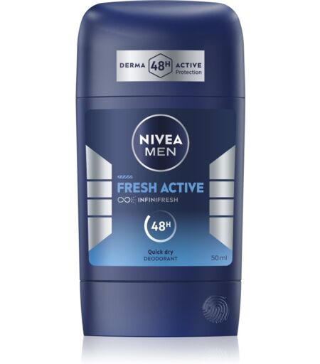 NIVEA MEN Fresh Active, 50 ml, Deodorants & Antitranspirants voor Mannen, Wat er ook op je programma staat, zorgen over zweetgeurtjes kun je achterwege laten. De deodorant NIVEA MEN Fresh Active voorkomt de faux pas van onprettige lichaamsgeurtjes. Het product laat je lekker ruiken en gaat de nare geur tegen die ontstaat wanneer zweet op de huid reageert met bacteriën. Het zorgt voor langdurige bescherming dankzij de doeltreffende, deodoriserende werking, zodat je de hele dag door kunt genieten van een gevoel van frisheid en zuiverheid. Kenmerken: beschermt tegen vervelende geur biedt langdurige bescherming geeft frisheid praktisch en hygiënisch gebruik ruikt aangenaam geeft een langdurig gevoel van comfort en reinheid Hoe te gebruiken: Breng aan op een schone en droge huid onder de armen. Geschikt voor dagelijks gebruik. ...