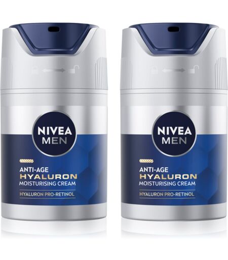 NIVEA MEN Hyaluron Pro-Retinol, 2x50 ml, Gezichtsverzorgingssets voor mannen voor Mannen, Wil je je gezichtsverzorging niet onderschatten? Gebruik elke dag een gezichtscrème. Dat is namelijk de basis van alle huidverzorging, en een gewone gezichtsroutine is niet compleet zonder, ongeacht het huidtype of de specifieke behoeften. De gezichtscrème NIVEA MEN Hyaluron Pro-Retinol zal je natuurlijke huidfuncties ondersteunen, helpen om je huid in balans te houden en voldoende hydratatie te behouden, en bijdragen aan een algeheel gezondere uitstraling. Inhoud van de set: 2x NIVEA MEN Hyaluron Hydraterende Crème tegen Rimpels 50 ml Kenmerken: vermindert rimpels en voorkomt de vorming ervan hydrateert intensief verjongt de huid en geeft hem energie Het product werd speciaal ontwikkeld voor de behoeften van mannenhuid een set voor een voordelige prijs Ingrediënten: veganistisch product Hoe te gebruiken: Breng aan op gereinigde huid en masseer in met cirkelvormige bewegingen. Breng aan op het gezicht, de hals en het decolleté. Gebruik elke ochtend regelmatig. ...