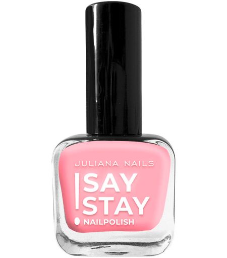 STAY, STAY, STAY - jouw wens is het bevel van deze nagellak! De exclusieve formule van Say Stay! nagellak zorgt voor een uitzonderlijk langhoudend effect op je nagels. De aangename, dekkende textuur en het zachte, natuurlijk afgeronde kwastje vereenvoudigen het aanbrengen en zorgen voor een vlekkeloos en vooral streeploos resultaat. Exclusieve formuleExtra langhoudendAangename droogtijdStreeploos aan te brengenHoge kleurbriljantieUitstekende pigmentatieZacht kwastje met natuurlijke rondingGeen verkleuring van de natuurlijke nagelsMoeiteloos te verwijderen met nagellakremover Say Stay! Deze claim nemen we meer dan serieus met onze nagellakken, want de Say Stay! nagellak is absoluut een blijvertje! De exclusieve formule van Say Stay! nagellak zal je verblijden met zijn uitzonderlijk lange houdbaarheid op je nagels. Gemakkelijk aan te brengen! De aangename, zeer dekkende textuur en het zachte, natuurlijk afgeronde kwastje maken het aanbrengen gemakkelijk en zorgen voor een vlekkeloos en vooral streeploos resultaat. Vervelende strepen en lelijke nagelranden behoren tot het verleden! Verwijderen gaat moeiteloos met onze nagellakremover (zonder aceton). Kleuren in overvloed! Fel, subtiel, licht of donker, Juliana Nails heeft de juiste kleur voor elke stemming en elke smaak. Maar dat is nog niet alles. Bij Juliana Nails kun je ook de juiste base coat of top coat voor jou kiezen uit tal van behandelingen. Of het nu gaat om een gladmakende groove filler of een sneldrogende top coat - iedereen vindt hier wat hij zoekt. Laat je overtuigen door de lange houdbaarheid van deze nagellakkleuren en blijf zeggen STAY, STAY, STAY - jouw wens is het bevel van deze nagellakkleuren! Kleuren kunnen iets afwijken van de ware kleur, afhankelijk van scherm- of beeldschermkwaliteit. INSTRUCTIES: 1. was je handen. (zonder zeep) 2. Vijl je natuurlijke nagels in vorm. 3. Stof je natuurlijke nagels af met een nagelborsteltje. 4. Breng een dun laagje van de gewenste basisnagel aan. 5. Breng een zeer dunne laag van de gewenste base coat aan. 5. Laat 1-2 minuten drogen aan de lucht (afhankelijk van het product). 6. Nu kun je de door jou gekozen nagellakkleur aanbrengen. Zorg ervoor dat je een dunne laag nagellak aanbrengt die het uiteinde van de nagel bedekt. 7. Laat deze laag aan de lucht drogen voor 2-3 minuten. Laat deze laag 2-3 minuten aan de lucht drogen. (De droogtijd kan tot een minimum worden beperkt door de nagellak spaarzaam aan te brengen). 8. Herhaal de laatste twee stappen indien nodig. 9. Om te verzegelen breng je een top coat naar keuze aan. Nogmaals, zorg ervoor dat je de tip van je nagel voorzichtig bedekt en laat het volledig drogen. Een kleine tip: verzorg je nagels daarna met een van onze nagelriemoliën. De kleuren De Say Stay! Nail Polish - Drinks On Me is een zachte lila-taupe tint. Dekking: mediumDe Say Stay! Nail Polish - Feeling Blue is een pastel baby blauw. Dekking: medium Say Stay! Nail Polish - Happy Mind is een koel pastelroze met paarse ondertonen.... ...