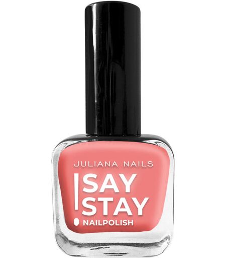 STAY, STAY, STAY - jouw wens is het bevel van deze nagellak! De exclusieve formule van Say Stay! nagellak zorgt voor een uitzonderlijk langhoudend effect op je nagels. De aangename, dekkende textuur en het zachte, natuurlijk afgeronde kwastje vereenvoudigen het aanbrengen en zorgen voor een vlekkeloos en vooral streeploos resultaat. Exclusieve formuleExtra langhoudendAangename droogtijdStreeploos aan te brengenHoge kleurbriljantieUitstekende pigmentatieZacht kwastje met natuurlijke rondingGeen verkleuring van de natuurlijke nagelsMoeiteloos te verwijderen met nagellakremover Say Stay! Deze claim nemen we meer dan serieus met onze nagellakken, want de Say Stay! nagellak is absoluut een blijvertje! De exclusieve formule van Say Stay! nagellak zal je verblijden met zijn uitzonderlijk lange houdbaarheid op je nagels. Gemakkelijk aan te brengen! De aangename, zeer dekkende textuur en het zachte, natuurlijk afgeronde kwastje maken het aanbrengen gemakkelijk en zorgen voor een vlekkeloos en vooral streeploos resultaat. Vervelende strepen en lelijke nagelranden behoren tot het verleden! Verwijderen gaat moeiteloos met onze nagellakremover (zonder aceton). Kleuren in overvloed! Fel, subtiel, licht of donker, Juliana Nails heeft de juiste kleur voor elke stemming en elke smaak. Maar dat is nog niet alles. Bij Juliana Nails kun je ook de juiste base coat of top coat voor jou kiezen uit tal van behandelingen. Of het nu gaat om een gladmakende groove filler of een sneldrogende top coat - iedereen vindt hier wat hij zoekt. Laat je overtuigen door de lange houdbaarheid van deze nagellakkleuren en blijf zeggen STAY, STAY, STAY - jouw wens is het bevel van deze nagellakkleuren! Kleuren kunnen iets afwijken van de ware kleur, afhankelijk van scherm- of beeldschermkwaliteit. INSTRUCTIES: 1. was je handen. (zonder zeep) 2. Vijl je natuurlijke nagels in vorm. 3. Stof je natuurlijke nagels af met een nagelborsteltje. 4. Breng een dun laagje van de gewenste basisnagel aan. 5. Breng een zeer dunne laag van de gewenste base coat aan. 5. Laat 1-2 minuten drogen aan de lucht (afhankelijk van het product). 6. Nu kun je de door jou gekozen nagellakkleur aanbrengen. Zorg ervoor dat je een dunne laag nagellak aanbrengt die het uiteinde van de nagel bedekt. 7. Laat deze laag aan de lucht drogen voor 2-3 minuten. Laat deze laag 2-3 minuten aan de lucht drogen. (De droogtijd kan tot een minimum worden beperkt door de nagellak spaarzaam aan te brengen). 8. Herhaal de laatste twee stappen indien nodig. 9. Om te verzegelen breng je een top coat naar keuze aan. Nogmaals, zorg ervoor dat je de tip van je nagel voorzichtig bedekt en laat het volledig drogen. Een kleine tip: verzorg je nagels daarna met een van onze nagelriemoliën. De kleuren De Say Stay! Nail Polish - Drinks On Me is een zachte lila-taupe tint. Dekking: mediumDe Say Stay! Nail Polish - Feeling Blue is een pastel baby blauw. Dekking: medium Say Stay! Nail Polish - Happy Mind is een koel pastelroze met paarse ondertonen.... ...