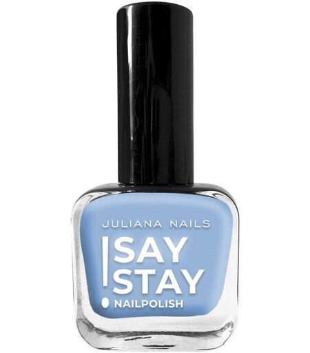 STAY, STAY, STAY - jouw wens is het bevel van deze nagellak! De exclusieve formule van Say Stay! nagellak zorgt voor een uitzonderlijk langhoudend effect op je nagels. De aangename, dekkende textuur en het zachte, natuurlijk afgeronde kwastje vereenvoudigen het aanbrengen en zorgen voor een vlekkeloos en vooral streeploos resultaat. Exclusieve formuleExtra langhoudendAangename droogtijdStreeploos aan te brengenHoge kleurbriljantieUitstekende pigmentatieZacht kwastje met natuurlijke rondingGeen verkleuring van de natuurlijke nagelsMoeiteloos te verwijderen met nagellakremover Say Stay! Deze claim nemen we meer dan serieus met onze nagellakken, want de Say Stay! nagellak is absoluut een blijvertje! De exclusieve formule van Say Stay! nagellak zal je verblijden met zijn uitzonderlijk lange houdbaarheid op je nagels. Gemakkelijk aan te brengen! De aangename, zeer dekkende textuur en het zachte, natuurlijk afgeronde kwastje maken het aanbrengen gemakkelijk en zorgen voor een vlekkeloos en vooral streeploos resultaat. Vervelende strepen en lelijke nagelranden behoren tot het verleden! Verwijderen gaat moeiteloos met onze nagellakremover (zonder aceton). Kleuren in overvloed! Fel, subtiel, licht of donker, Juliana Nails heeft de juiste kleur voor elke stemming en elke smaak. Maar dat is nog niet alles. Bij Juliana Nails kun je ook de juiste base coat of top coat voor jou kiezen uit tal van behandelingen. Of het nu gaat om een gladmakende groove filler of een sneldrogende top coat - iedereen vindt hier wat hij zoekt. Laat je overtuigen door de lange houdbaarheid van deze nagellakkleuren en blijf zeggen STAY, STAY, STAY - jouw wens is het bevel van deze nagellakkleuren! Kleuren kunnen iets afwijken van de ware kleur, afhankelijk van scherm- of beeldschermkwaliteit. INSTRUCTIES: 1. was je handen. (zonder zeep) 2. Vijl je natuurlijke nagels in vorm. 3. Stof je natuurlijke nagels af met een nagelborsteltje. 4. Breng een dun laagje van de gewenste basisnagel aan. 5. Breng een zeer dunne laag van de gewenste base coat aan. 5. Laat 1-2 minuten drogen aan de lucht (afhankelijk van het product). 6. Nu kun je de door jou gekozen nagellakkleur aanbrengen. Zorg ervoor dat je een dunne laag nagellak aanbrengt die het uiteinde van de nagel bedekt. 7. Laat deze laag aan de lucht drogen voor 2-3 minuten. Laat deze laag 2-3 minuten aan de lucht drogen. (De droogtijd kan tot een minimum worden beperkt door de nagellak spaarzaam aan te brengen). 8. Herhaal de laatste twee stappen indien nodig. 9. Om te verzegelen breng je een top coat naar keuze aan. Nogmaals, zorg ervoor dat je de tip van je nagel voorzichtig bedekt en laat het volledig drogen. Een kleine tip: verzorg je nagels daarna met een van onze nagelriemoliën. De kleuren De Say Stay! Nail Polish - Drinks On Me is een zachte lila-taupe tint. Dekking: mediumDe Say Stay! Nail Polish - Feeling Blue is een pastel baby blauw. Dekking: medium Say Stay! Nail Polish - Happy Mind is een koel pastelroze met paarse ondertonen.... ...