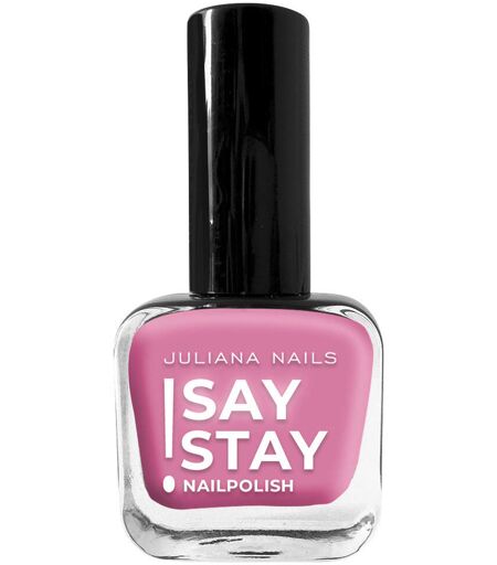 STAY, STAY, STAY - jouw wens is het bevel van deze nagellak! De exclusieve formule van Say Stay! nagellak zorgt voor een uitzonderlijk langhoudend effect op je nagels. De aangename, dekkende textuur en het zachte, natuurlijk afgeronde kwastje vereenvoudigen het aanbrengen en zorgen voor een vlekkeloos en vooral streeploos resultaat. Exclusieve formuleExtra langhoudendAangename droogtijdStreeploos aan te brengenHoge kleurbriljantieUitstekende pigmentatieZacht kwastje met natuurlijke rondingGeen verkleuring van de natuurlijke nagelsMoeiteloos te verwijderen met nagellakremover Say Stay! Deze claim nemen we meer dan serieus met onze nagellakken, want de Say Stay! nagellak is absoluut een blijvertje! De exclusieve formule van Say Stay! nagellak zal je verblijden met zijn uitzonderlijk lange houdbaarheid op je nagels. Gemakkelijk aan te brengen! De aangename, zeer dekkende textuur en het zachte, natuurlijk afgeronde kwastje maken het aanbrengen gemakkelijk en zorgen voor een vlekkeloos en vooral streeploos resultaat. Vervelende strepen en lelijke nagelranden behoren tot het verleden! Verwijderen gaat moeiteloos met onze nagellakremover (zonder aceton). Kleuren in overvloed! Fel, subtiel, licht of donker, Juliana Nails heeft de juiste kleur voor elke stemming en elke smaak. Maar dat is nog niet alles. Bij Juliana Nails kun je ook de juiste base coat of top coat voor jou kiezen uit tal van behandelingen. Of het nu gaat om een gladmakende groove filler of een sneldrogende top coat - iedereen vindt hier wat hij zoekt. Laat je overtuigen door de lange houdbaarheid van deze nagellakkleuren en blijf zeggen STAY, STAY, STAY - jouw wens is het bevel van deze nagellakkleuren! Kleuren kunnen iets afwijken van de ware kleur, afhankelijk van scherm- of beeldschermkwaliteit. INSTRUCTIES: 1. was je handen. (zonder zeep) 2. Vijl je natuurlijke nagels in vorm. 3. Stof je natuurlijke nagels af met een nagelborsteltje. 4. Breng een dun laagje van de gewenste basisnagel aan. 5. Breng een zeer dunne laag van de gewenste base coat aan. 5. Laat 1-2 minuten drogen aan de lucht (afhankelijk van het product). 6. Nu kun je de door jou gekozen nagellakkleur aanbrengen. Zorg ervoor dat je een dunne laag nagellak aanbrengt die het uiteinde van de nagel bedekt. 7. Laat deze laag aan de lucht drogen voor 2-3 minuten. Laat deze laag 2-3 minuten aan de lucht drogen. (De droogtijd kan tot een minimum worden beperkt door de nagellak spaarzaam aan te brengen). 8. Herhaal de laatste twee stappen indien nodig. 9. Om te verzegelen breng je een top coat naar keuze aan. Nogmaals, zorg ervoor dat je de tip van je nagel voorzichtig bedekt en laat het volledig drogen. Een kleine tip: verzorg je nagels daarna met een van onze nagelriemoliën. De kleuren De Say Stay! Nail Polish - Drinks On Me is een zachte lila-taupe tint. Dekking: mediumDe Say Stay! Nail Polish - Feeling Blue is een pastel baby blauw. Dekking: medium Say Stay! Nail Polish - Happy Mind is een koel pastelroze met paarse ondertonen.... ...