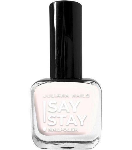 STAY, STAY, STAY - uw wens is het bevel van deze nagellak! De exclusieve formule van Say Stay! nagellak zorgt voor een uitzonderlijk langdurig effect op uw nagels. De aangename, dekkende textuur en het zachte, natuurlijk afgeronde kwastje vereenvoudigen het aanbrengen en zorgen voor een vlekkeloos en vooral streeploos resultaat. Exclusieve formuleExtra lang houdbaarAangename droogtijdStreeploos aanbrengenHoge kleurbriljantieUitstekende pigmentatieZacht penseel met natuurlijke rondingGeen verkleuring van de natuurlijke nagelsMoeiteloos te verwijderen met nagellakremover Say Stay! Deze claim nemen we met onze nagellakken meer dan serieus, want de Say Stay! nagellak is zeker gekomen om te blijven! De exclusieve formule van Say Stay! nagellak zal je verblijden met zijn uitzonderlijk lange houdbaarheid op je nagels. Gemakkelijk aan te brengen! De aangename, zeer dekkende textuur en het zachte, natuurlijk afgeronde kwastje maken het aanbrengen gemakkelijk en zorgen voor een vlekkeloos en vooral streeploos resultaat. Vervelende strepen en lelijke nagelranden behoren tot het verleden! Met onze nagellakremover (zonder aceton) verwijder je de lak moeiteloos. Kleuren in overvloed! Fel, subtiel, licht of donker, Juliana Nails heeft voor elke stemming en elke smaak de juiste kleur. Maar dat is nog niet alles. Bij Juliana Nails kunt u ook de juiste base coat of top coat voor u kiezen uit talrijke behandelingen. Of het nu gaat om een gladmakende groefvuller of een sneldrogende topcoat - iedereen vindt hier wat hij zoekt. Laat je overtuigen door de lange houdbaarheid van deze nagellakkleuren en blijf gewoon STAY, STAY, STAY zeggen - jouw wens is het bevel van deze nagellakkleuren! De kleuren kunnen enigszins afwijken van de ware kleur, afhankelijk van de scherm- of weergavekwaliteit. HOE TE GEBRUIKEN: 1. was je handen. (zonder zeep) 2. Vijl uw natuurlijke nagels in vorm. 3. Stof uw natuurlijke nagels af met een nagelborstel. Breng een zeer dunne laag van de gewenste base coat aan. 5. 5. Laat 1-2 minuten aan de lucht drogen (verschilt per product). 6. Nu kun je de door jou gekozen nagellakkleur aanbrengen. Zorg ervoor dat je een dunne laag nagellak aanbrengt die de punt van de nagel bedekt. 7. Laat deze laag 2-3 minuten aan de lucht drogen. (De droogtijd kan geminimaliseerd worden door de nagellak spaarzaam aan te brengen). 8. Herhaal de laatste twee stappen indien nodig. 9. Breng ter verzegeling een topcoat naar keuze aan. Nogmaals, zorg ervoor dat je de tip van je nagel voorzichtig bedekt en volledig laat drogen. Een kleine tip: verzorg je nagels daarna met een van onze nagelriemoliën. De kleuren De Say Stay! Nail Polish - Drinks On Me is een zachte lila-taupe tint. Dekking: medium De Say Stay! Nail Polish - Feeling Blue is een pastel baby blauw. Dekking: medium De Say Stay! Nail Polish - Happy Mind is een koel pastel roze met paarse ondertonen. Dekking: medium-hoog De Say Stay! Nail Polish - Remember Me is een intens, donkerder bessenpaars. Dekking: hoge... ...