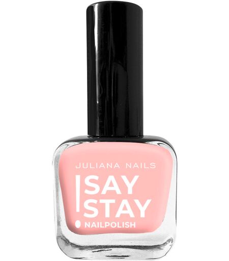 STAY, STAY, STAY - uw wens is het bevel van deze nagellak! De exclusieve formule van Say Stay! nagellak zorgt voor een uitzonderlijk langdurig effect op uw nagels. De aangename, dekkende textuur en het zachte, natuurlijk afgeronde kwastje vereenvoudigen het aanbrengen en zorgen voor een vlekkeloos en vooral streeploos resultaat. Exclusieve formuleExtra lang houdbaarAangename droogtijdStreeploos aanbrengenHoge kleurbriljantieUitstekende pigmentatieZacht penseel met natuurlijke rondingGeen verkleuring van de natuurlijke nagelsMoeiteloos te verwijderen met nagellakremover Say Stay! Deze claim nemen we met onze nagellakken meer dan serieus, want de Say Stay! nagellak is zeker gekomen om te blijven! De exclusieve formule van Say Stay! nagellak zal je verblijden met zijn uitzonderlijk lange houdbaarheid op je nagels. Gemakkelijk aan te brengen! De aangename, zeer dekkende textuur en het zachte, natuurlijk afgeronde kwastje maken het aanbrengen gemakkelijk en zorgen voor een vlekkeloos en vooral streeploos resultaat. Vervelende strepen en lelijke nagelranden behoren tot het verleden! Met onze nagellakremover (zonder aceton) verwijder je de lak moeiteloos. Kleuren in overvloed! Fel, subtiel, licht of donker, Juliana Nails heeft voor elke stemming en elke smaak de juiste kleur. Maar dat is nog niet alles. Bij Juliana Nails kunt u ook de juiste base coat of top coat voor u kiezen uit talrijke behandelingen. Of het nu gaat om een gladmakende groefvuller of een sneldrogende topcoat - iedereen vindt hier wat hij zoekt. Laat je overtuigen door de lange houdbaarheid van deze nagellakkleuren en blijf gewoon STAY, STAY, STAY zeggen - jouw wens is het bevel van deze nagellakkleuren! De kleuren kunnen enigszins afwijken van de ware kleur, afhankelijk van de scherm- of weergavekwaliteit. HOE TE GEBRUIKEN: 1. was je handen. (zonder zeep) 2. Vijl uw natuurlijke nagels in vorm. 3. Stof uw natuurlijke nagels af met een nagelborstel. Breng een zeer dunne laag van de gewenste base coat aan. 5. 5. Laat 1-2 minuten aan de lucht drogen (verschilt per product). 6. Nu kun je de door jou gekozen nagellakkleur aanbrengen. Zorg ervoor dat je een dunne laag nagellak aanbrengt die de punt van de nagel bedekt. 7. Laat deze laag 2-3 minuten aan de lucht drogen. (De droogtijd kan geminimaliseerd worden door de nagellak spaarzaam aan te brengen). 8. Herhaal de laatste twee stappen indien nodig. 9. Breng ter verzegeling een topcoat naar keuze aan. Nogmaals, zorg ervoor dat je de tip van je nagel voorzichtig bedekt en volledig laat drogen. Een kleine tip: verzorg je nagels daarna met een van onze nagelriemoliën. De kleuren De Say Stay! Nail Polish - Drinks On Me is een zachte lila-taupe tint. Dekking: medium De Say Stay! Nail Polish - Feeling Blue is een pastel baby blauw. Dekking: medium De Say Stay! Nail Polish - Happy Mind is een koel pastel roze met paarse ondertonen. Dekking: medium-hoog De Say Stay! Nail Polish - Remember Me is een intens, donkerder bessenpaars. Dekking: hoge... ...