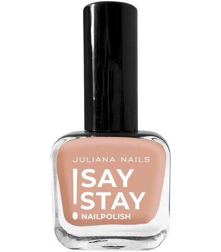 STAY, STAY, STAY - uw wens is het bevel van deze nagellak! De exclusieve formule van Say Stay! nagellak zorgt voor een uitzonderlijk langdurig effect op uw nagels. De aangename, dekkende textuur en het zachte, natuurlijk afgeronde kwastje vereenvoudigen het aanbrengen en zorgen voor een vlekkeloos en vooral streeploos resultaat. Exclusieve formuleExtra lang houdbaarAangename droogtijdStreeploos aanbrengenHoge kleurbriljantieUitstekende pigmentatieZacht penseel met natuurlijke rondingGeen verkleuring van de natuurlijke nagelsMoeiteloos te verwijderen met nagellakremover Say Stay! Deze claim nemen we met onze nagellakken meer dan serieus, want de Say Stay! nagellak is zeker gekomen om te blijven! De exclusieve formule van Say Stay! nagellak zal je verblijden met zijn uitzonderlijk lange houdbaarheid op je nagels. Gemakkelijk aan te brengen! De aangename, zeer dekkende textuur en het zachte, natuurlijk afgeronde kwastje maken het aanbrengen gemakkelijk en zorgen voor een vlekkeloos en vooral streeploos resultaat. Vervelende strepen en lelijke nagelranden behoren tot het verleden! Met onze nagellakremover (zonder aceton) verwijder je de lak moeiteloos. Kleuren in overvloed! Fel, subtiel, licht of donker, Juliana Nails heeft voor elke stemming en elke smaak de juiste kleur. Maar dat is nog niet alles. Bij Juliana Nails kunt u ook de juiste base coat of top coat voor u kiezen uit talrijke behandelingen. Of het nu gaat om een gladmakende groefvuller of een sneldrogende topcoat - iedereen vindt hier wat hij zoekt. Laat je overtuigen door de lange houdbaarheid van deze nagellakkleuren en blijf gewoon STAY, STAY, STAY zeggen - jouw wens is het bevel van deze nagellakkleuren! De kleuren kunnen enigszins afwijken van de ware kleur, afhankelijk van de scherm- of weergavekwaliteit. HOE TE GEBRUIKEN: 1. was je handen. (zonder zeep) 2. Vijl uw natuurlijke nagels in vorm. 3. Stof uw natuurlijke nagels af met een nagelborstel. Breng een zeer dunne laag van de gewenste base coat aan. 5. 5. Laat 1-2 minuten aan de lucht drogen (verschilt per product). 6. Nu kun je de door jou gekozen nagellakkleur aanbrengen. Zorg ervoor dat je een dunne laag nagellak aanbrengt die de punt van de nagel bedekt. 7. Laat deze laag 2-3 minuten aan de lucht drogen. (De droogtijd kan geminimaliseerd worden door de nagellak spaarzaam aan te brengen). 8. Herhaal de laatste twee stappen indien nodig. 9. Breng ter verzegeling een topcoat naar keuze aan. Nogmaals, zorg ervoor dat je de tip van je nagel voorzichtig bedekt en volledig laat drogen. Een kleine tip: verzorg je nagels daarna met een van onze nagelriemoliën. De kleuren De Say Stay! Nail Polish - Drinks On Me is een zachte lila-taupe tint. Dekking: medium De Say Stay! Nail Polish - Feeling Blue is een pastel baby blauw. Dekking: medium De Say Stay! Nail Polish - Happy Mind is een koel pastel roze met paarse ondertonen. Dekking: medium-hoog De Say Stay! Nail Polish - Remember Me is een intens, donkerder bessenpaars. Dekking: hoge... ...