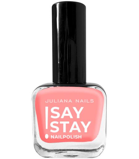 STAY, STAY, STAY - uw wens is het bevel van deze nagellak! De exclusieve formule van Say Stay! nagellak zorgt voor een uitzonderlijk langdurig effect op uw nagels. De aangename, dekkende textuur en het zachte, natuurlijk afgeronde kwastje vereenvoudigen het aanbrengen en zorgen voor een vlekkeloos en vooral streeploos resultaat. Exclusieve formuleExtra lang houdbaarAangename droogtijdStreeploos aanbrengenHoge kleurbriljantieUitstekende pigmentatieZacht penseel met natuurlijke rondingGeen verkleuring van de natuurlijke nagelsMoeiteloos te verwijderen met nagellakremover Say Stay! Deze claim nemen we met onze nagellakken meer dan serieus, want de Say Stay! nagellak is zeker gekomen om te blijven! De exclusieve formule van Say Stay! nagellak zal je verblijden met zijn uitzonderlijk lange houdbaarheid op je nagels. Gemakkelijk aan te brengen! De aangename, zeer dekkende textuur en het zachte, natuurlijk afgeronde kwastje maken het aanbrengen gemakkelijk en zorgen voor een vlekkeloos en vooral streeploos resultaat. Vervelende strepen en lelijke nagelranden behoren tot het verleden! Met onze nagellakremover (zonder aceton) verwijder je de lak moeiteloos. Kleuren in overvloed! Fel, subtiel, licht of donker, Juliana Nails heeft voor elke stemming en elke smaak de juiste kleur. Maar dat is nog niet alles. Bij Juliana Nails kunt u ook de juiste base coat of top coat voor u kiezen uit talrijke behandelingen. Of het nu gaat om een gladmakende groefvuller of een sneldrogende topcoat - iedereen vindt hier wat hij zoekt. Laat je overtuigen door de lange houdbaarheid van deze nagellakkleuren en blijf gewoon STAY, STAY, STAY zeggen - jouw wens is het bevel van deze nagellakkleuren! De kleuren kunnen enigszins afwijken van de ware kleur, afhankelijk van de scherm- of weergavekwaliteit. HOE TE GEBRUIKEN: 1. was je handen. (zonder zeep) 2. Vijl uw natuurlijke nagels in vorm. 3. Stof uw natuurlijke nagels af met een nagelborstel. Breng een zeer dunne laag van de gewenste base coat aan. 5. 5. Laat 1-2 minuten aan de lucht drogen (verschilt per product). 6. Nu kun je de door jou gekozen nagellakkleur aanbrengen. Zorg ervoor dat je een dunne laag nagellak aanbrengt die de punt van de nagel bedekt. 7. Laat deze laag 2-3 minuten aan de lucht drogen. (De droogtijd kan geminimaliseerd worden door de nagellak spaarzaam aan te brengen). 8. Herhaal de laatste twee stappen indien nodig. 9. Breng ter verzegeling een topcoat naar keuze aan. Nogmaals, zorg ervoor dat je de tip van je nagel voorzichtig bedekt en volledig laat drogen. Een kleine tip: verzorg je nagels daarna met een van onze nagelriemoliën. De kleuren De Say Stay! Nail Polish - Drinks On Me is een zachte lila-taupe tint. Dekking: medium De Say Stay! Nail Polish - Feeling Blue is een pastel baby blauw. Dekking: medium De Say Stay! Nail Polish - Happy Mind is een koel pastel roze met paarse ondertonen. Dekking: medium-hoog De Say Stay! Nail Polish - Remember Me is een intens, donkerder bessenpaars. Dekking: hoge... ...
