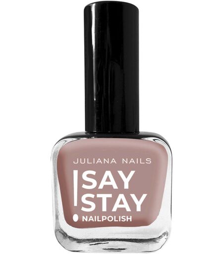 STAY, STAY, STAY - uw wens is het bevel van deze nagellak! De exclusieve formule van Say Stay! nagellak zorgt voor een uitzonderlijk langdurig effect op uw nagels. De aangename, dekkende textuur en het zachte, natuurlijk afgeronde kwastje vereenvoudigen het aanbrengen en zorgen voor een vlekkeloos en vooral streeploos resultaat. Exclusieve formuleExtra lang houdbaarAangename droogtijdStreeploos aanbrengenHoge kleurbriljantieUitstekende pigmentatieZacht penseel met natuurlijke rondingGeen verkleuring van de natuurlijke nagelsMoeiteloos te verwijderen met nagellakremover Say Stay! Deze claim nemen we met onze nagellakken meer dan serieus, want de Say Stay! nagellak is zeker gekomen om te blijven! De exclusieve formule van Say Stay! nagellak zal je verblijden met zijn uitzonderlijk lange houdbaarheid op je nagels. Gemakkelijk aan te brengen! De aangename, zeer dekkende textuur en het zachte, natuurlijk afgeronde kwastje maken het aanbrengen gemakkelijk en zorgen voor een vlekkeloos en vooral streeploos resultaat. Vervelende strepen en lelijke nagelranden behoren tot het verleden! Met onze nagellakremover (zonder aceton) verwijder je de lak moeiteloos. Kleuren in overvloed! Fel, subtiel, licht of donker, Juliana Nails heeft voor elke stemming en elke smaak de juiste kleur. Maar dat is nog niet alles. Bij Juliana Nails kunt u ook de juiste base coat of top coat voor u kiezen uit talrijke behandelingen. Of het nu gaat om een gladmakende groefvuller of een sneldrogende topcoat - iedereen vindt hier wat hij zoekt. Laat je overtuigen door de lange houdbaarheid van deze nagellakkleuren en blijf gewoon STAY, STAY, STAY zeggen - jouw wens is het bevel van deze nagellakkleuren! De kleuren kunnen enigszins afwijken van de ware kleur, afhankelijk van de scherm- of weergavekwaliteit. HOE TE GEBRUIKEN: 1. was je handen. (zonder zeep) 2. Vijl uw natuurlijke nagels in vorm. 3. Stof uw natuurlijke nagels af met een nagelborstel. Breng een zeer dunne laag van de gewenste base coat aan. 5. 5. Laat 1-2 minuten aan de lucht drogen (verschilt per product). 6. Nu kun je de door jou gekozen nagellakkleur aanbrengen. Zorg ervoor dat je een dunne laag nagellak aanbrengt die de punt van de nagel bedekt. 7. Laat deze laag 2-3 minuten aan de lucht drogen. (De droogtijd kan geminimaliseerd worden door de nagellak spaarzaam aan te brengen). 8. Herhaal de laatste twee stappen indien nodig. 9. Breng ter verzegeling een topcoat naar keuze aan. Nogmaals, zorg ervoor dat je de tip van je nagel voorzichtig bedekt en volledig laat drogen. Een kleine tip: verzorg je nagels daarna met een van onze nagelriemoliën. De kleuren De Say Stay! Nail Polish - Drinks On Me is een zachte lila-taupe tint. Dekking: medium De Say Stay! Nail Polish - Feeling Blue is een pastel baby blauw. Dekking: medium De Say Stay! Nail Polish - Happy Mind is een koel pastel roze met paarse ondertonen. Dekking: medium-hoog De Say Stay! Nail Polish - Remember Me is een intens, donkerder bessenpaars. Dekking: hoge... ...