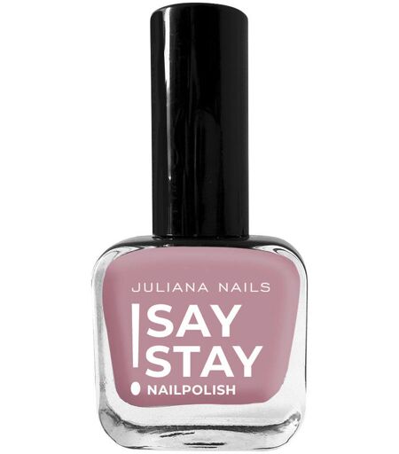 STAY, STAY, STAY - uw wens is het bevel van deze nagellak! De exclusieve formule van Say Stay! nagellak zorgt voor een uitzonderlijk langdurig effect op uw nagels. De aangename, dekkende textuur en het zachte, natuurlijk afgeronde kwastje vereenvoudigen het aanbrengen en zorgen voor een vlekkeloos en vooral streeploos resultaat. Exclusieve formuleExtra lang houdbaarAangename droogtijdStreeploos aanbrengenHoge kleurbriljantieUitstekende pigmentatieZacht penseel met natuurlijke rondingGeen verkleuring van de natuurlijke nagelsMoeiteloos te verwijderen met nagellakremover Say Stay! Deze claim nemen we met onze nagellakken meer dan serieus, want de Say Stay! nagellak is zeker gekomen om te blijven! De exclusieve formule van Say Stay! nagellak zal je verblijden met zijn uitzonderlijk lange houdbaarheid op je nagels. Gemakkelijk aan te brengen! De aangename, zeer dekkende textuur en het zachte, natuurlijk afgeronde kwastje maken het aanbrengen gemakkelijk en zorgen voor een vlekkeloos en vooral streeploos resultaat. Vervelende strepen en lelijke nagelranden behoren tot het verleden! Met onze nagellakremover (zonder aceton) verwijder je de lak moeiteloos. Kleuren in overvloed! Fel, subtiel, licht of donker, Juliana Nails heeft voor elke stemming en elke smaak de juiste kleur. Maar dat is nog niet alles. Bij Juliana Nails kunt u ook de juiste base coat of top coat voor u kiezen uit talrijke behandelingen. Of het nu gaat om een gladmakende groefvuller of een sneldrogende topcoat - iedereen vindt hier wat hij zoekt. Laat je overtuigen door de lange houdbaarheid van deze nagellakkleuren en blijf gewoon STAY, STAY, STAY zeggen - jouw wens is het bevel van deze nagellakkleuren! De kleuren kunnen enigszins afwijken van de ware kleur, afhankelijk van de scherm- of weergavekwaliteit. HOE TE GEBRUIKEN: 1. was je handen. (zonder zeep) 2. Vijl uw natuurlijke nagels in vorm. 3. Stof uw natuurlijke nagels af met een nagelborstel. Breng een zeer dunne laag van de gewenste base coat aan. 5. 5. Laat 1-2 minuten aan de lucht drogen (verschilt per product). 6. Nu kun je de door jou gekozen nagellakkleur aanbrengen. Zorg ervoor dat je een dunne laag nagellak aanbrengt die de punt van de nagel bedekt. 7. Laat deze laag 2-3 minuten aan de lucht drogen. (De droogtijd kan geminimaliseerd worden door de nagellak spaarzaam aan te brengen). 8. Herhaal de laatste twee stappen indien nodig. 9. Breng ter verzegeling een topcoat naar keuze aan. Nogmaals, zorg ervoor dat je de tip van je nagel voorzichtig bedekt en volledig laat drogen. Een kleine tip: verzorg je nagels daarna met een van onze nagelriemoliën. De kleuren De Say Stay! Nail Polish - Drinks On Me is een zachte lila-taupe tint. Dekking: medium De Say Stay! Nail Polish - Feeling Blue is een pastel baby blauw. Dekking: medium De Say Stay! Nail Polish - Happy Mind is een koel pastel roze met paarse ondertonen. Dekking: medium-hoog De Say Stay! Nail Polish - Remember Me is een intens, donkerder bessenpaars. Dekking: hoge... ...