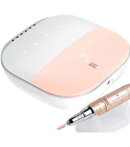 De kleine en handzame JN - Smart Touch router valt niet alleen op door zijn moderne uiterlijk, maar laat ook een blijvende indruk achter door zijn kracht. Het elegante aanraakscherm maakt de bediening nog eenvoudiger. - Krachtige router - 35.000 omwentelingen/minuut - Modern, compact ontwerp - Hoogwaardig, anti-slip metalen handstuk met snelsluiting - Stijlvol aanraakscherm - Digitale snelheidsweergave - Bit set inbegrepen - Traploze snelheid - Rechts en links draaien - Geïntegreerde bithouder (magnetisch) - Antislip basis - Voor gellak, acryl, gel en manicure - Compatibel met alle bur hulpstukken - Incl. plateau voor het handstuk - Kleur: zilver/roze met fijne glinstering - Snelheid: 35.000 rpm - Ingang: AC 100 - 240V 50/60 Hz - Uitgang: 3-18V - Vermogen: 30 W - Afmetingen (BxDxH) in mm: 120 x 125 x 35 ...