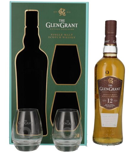 Glen Grant 12 Years Old Single Malt 43% Vol. 0,7l in geschenkverpakking met 2 Bril