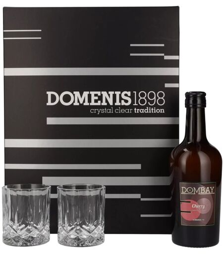 Domenis 1898 DOMBAY Cherry crema di ciliegie 17% Vol. 0,5l in geschenkverpakking met 2 Bril