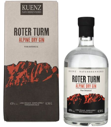 Roter Turm Alpine Dry Gin Pure Botanical 43% Vol. 0,5l in geschenkverpakking