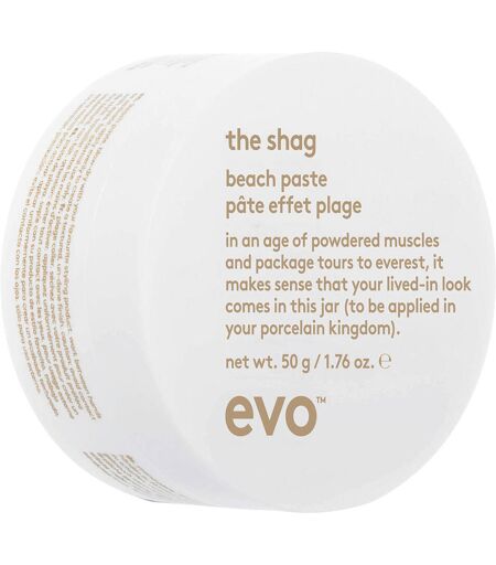 Een stylingpasta die een strandlook creëert met een matte afwerking. Zorgt voor een goede grip op het haar en bouwt volheid op. Zorgt voor een droge, matte afwerking. Absorbeert overtollige olie en helpt de levensduur van een kapsel te verlengen. Toepassing: Verdeel over de handen om te activeren. Breng aan op de middenlengten tot de uiteinden voor textuur en definitie, of direct op de aanzet voor volume en lift. Gebruik The Shag alleen of combineer met andere Evo stylingproducten voor nog meer textuur en stijl. ...