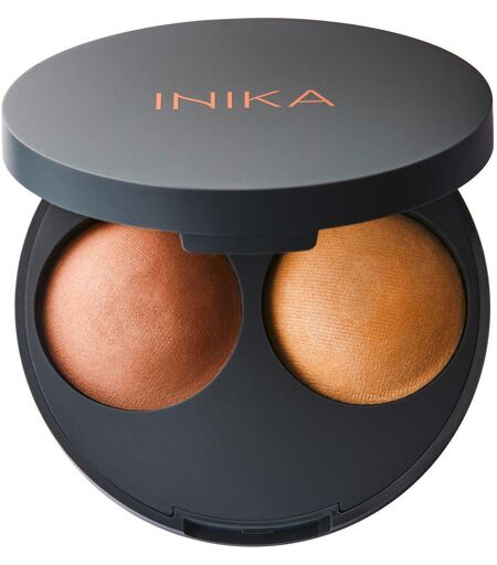 De zijdezachte poeders worden gebakken op een terracotta tegel in Toscane, Italië, en zijn verrijkt met kalmerend, ontstekingsremmend en antioxidantrijk magnolia schorsextract, dat de huid er steviger uit laat zien en fijne lijntjes vermindert. Squalaan uit olijven hydrateert, houdt de huidbarrière in stand en bestrijdt vrije radicalen. Suikerriet - of Saccharum Officinarum - werkt als een hydraterend bevochtigingsmiddel dat de huid helpt water aan te trekken en vast te houden, waardoor de huid soepeler wordt. Het INICA Organic Baked Contour Duo is verkrijgbaar in twee kleurencombinaties die passen bij je huidtint voor een natuurlijk gevormde teint. Het kan over foundation of alleen worden aangebracht om het gezicht een natuurlijke dimensie te geven. Het product zit in een duurzaam PCR gerecycled plastic potje voor eenmalig gebruik met spiegeltje. Toepassing: Gebruik na het aanbrengen van foundation de INIKA Sculptor Brush om de Champagne Highlighter over het voorhoofd, onder de ogen en over de kin te strijken om het midden van het gezicht te accentueren. Contour de jukbeenderen, haarlijn en kaaklijn met de bronzen tint. ...