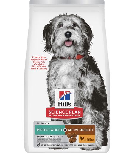 12kg Hill's Science Plan Adult Perfect Weight & Active Mobility Medium met Kip Hondenvoer droog