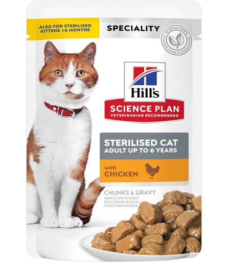 12x85g Adult Sterilised Cat met Kip Hill's Science Plan Kattenvoer