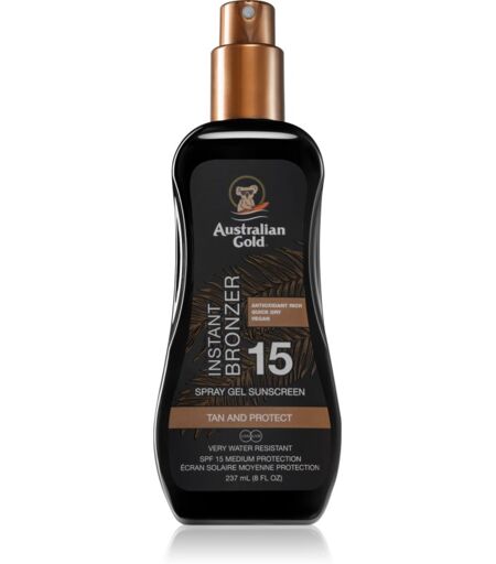 Australian Gold Spray Gel Sunscreen With Instant Bronzer Bronzing Spray SPF 15 237 ml
