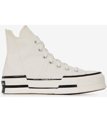 Reken op de gewaagde look van de Chuck 70 Plus damessneakers van Converse, voor een look als geen ander! Het hoge silhouet van deze schoen heeft een bovenwerk van wit textiel en een dikke plateauzool. ...