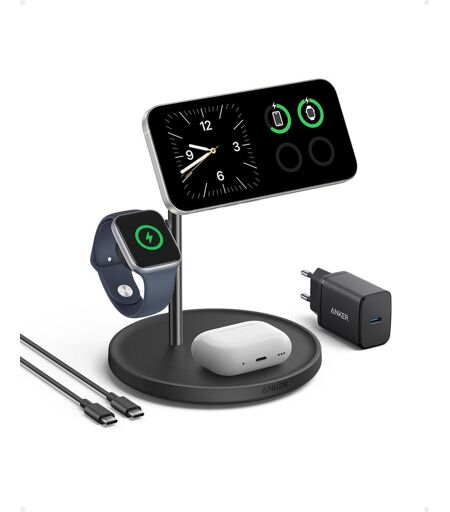 Anker MagGo 3-in-1 Draadloze Oplader 15W - Voor iPhone, Apple Watch & Airpods - Zwart