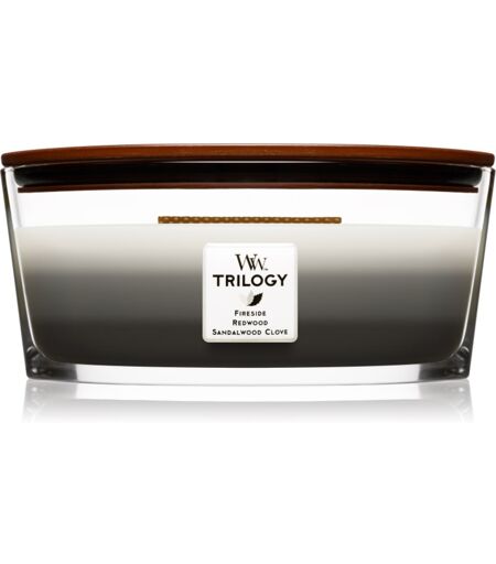 Woodwick Trilogy Warm Woods geurkaars met een houten lont (hearthwick) 453.6 g