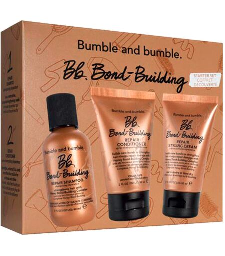 Honey Bond-Building Complex helpt bij het opbouwen van nieuwe bindingen in de cortex en versterkt de strengen om te voorkomen dat de beschermende barrière, de cuticula, breekt. Ons complex met wilde bloemen en honingfermenten bouwt bindingen op en verbetert de elasticiteit van het haar om breuk te voorkomen. Deze set bevat: 1 x Bond-Building Repair Shampoo, 60 ml1 x Bond-Building Repair Conditioner, 60 ml1 x Bond-Building Repair Styling Cream, 60 ml Hoe te gebruiken - Masseer Bond-Building Repair Shampoo in vochtig haar en spoel uit. - Breng vervolgens Bond-Building Repair Conditioner aan en laat 1-2 minuten intrekken. Uitspoelen. - Breng tot slot Bond-Building Repair Styling Cream aan op vochtig haar voor het föhnen of aan de lucht drogen. ...