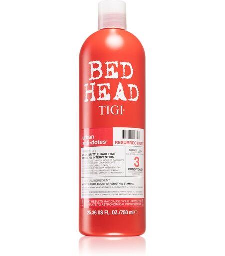 TIGI Bed Head Urban Antidotes Resurrection, 750 ml, Haarconditioners voor Vrouwen , Tijdens het wassen van het haar opent shampoo de oppervlaktestructuur van het haar – de cuticula oftewel haarschubben. Daarom is het essentieel om je haar na het wassen de nodige verzorging te geven die de haarschubben weer sluit. En dat is precies wat de conditioner TIGI Bed Head Urban Antidotes Resurrection doet. Naast het sluiten van de haarvezels voedt, hydrateert en verzacht dit product je haar ook, wat essentieel voor een mooie, glanzende en gezonde uitstraling. Het beschermt je haar tegen mechanische beschadiging en uitdroging, maakt het oppervlak glad en helpt het te verzachten, wat het kammen en verdere styling vergemakkelijkt. Kenmerken: zorgt voor de nodige hydratatie beschermt het haar tegen beschadiging sluit het oppervlak van de haren en maakt het resistenter verbetert de haarstructuur Hoe te gebruiken: Breng aan op het met shampoo gewassen haar. Laat het een tijdje werken en spoel daarna grondig af. ...