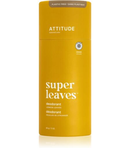 Attitude Super Leaves Lemon Leaves, 85 gr, Deodorant voor Vrouwen , De deodorant Attitude Super Leaves bestrijdt effectief de onaangename geur en geeft je een langdurig comfortabel en fris gevoel. Kenmerken: beschermt tegen vervelende geur zorgt voor een langdurig fris gevoel biedt langdurige bescherming irriteert de huid niet ruikt aangenaam hypoallergeen Ingrediënten: zonder aluminiumzouten veganistisch product dermatologisch getest bevat minimaal 90-99% ingrediënten van natuurlijke oorsprong Hoe te gebruiken: Breng aan op een schone en droge huid onder de armen. ...