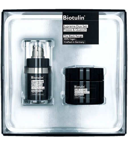 De Biotulin Gift Box vermindert zichtbaar fijne lijntjes, verbetert de elasticiteit van de huid en hydrateert intensief voor een gladde, jeugdige gloed. De Biotulin 24-Hour Skin Boost combineert Supreme Skin Gel en Soft Cream voor hydratatie de hele dag door, rimpelvermindering en een stralende teint. 1x Skin Gel, 15 ml1x Soft Cream, 50 ml Skin Gel: Deze lichtgewicht, snel absorberende gel is geformuleerd met spilanthol, een plantaardig actief ingrediënt dat fijne lijntjes en rimpels zichtbaar vermindert. Voor een gladdere, jeugdigere teint - zonder invasieve behandelingen. Soft Cream: Een luxe alles-in-één moisturiser die je huid 24/7 hydrateert, beschermt en revitaliseert. De rijke maar niet-vette formule biedt langdurige hydratatie overdag en ondersteunt de regeneratie van de huid 's nachts. ...