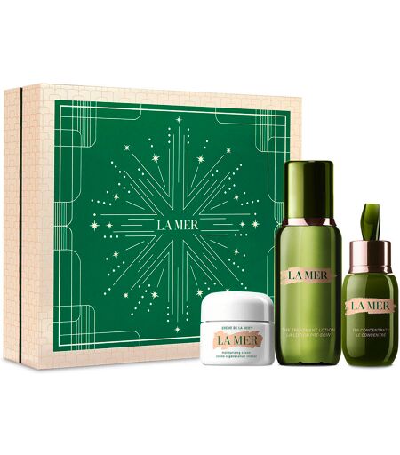 Een huidverzorgingsritueel van verzachten en versterken - The Soothing & Strenghtening Ritual van La Mer. Dit luxueuze trio omhult de huid met zijdezachte texturen en geeft haar een evenwichtige, versterkte uitstraling. Deze set bevat: 1x The Treatment Lotion 100 ml: Begin je huidverzorgingsritueel met The Treatment Lotion - het geeft je huid nieuwe energie, intensieve hydratatie en laat haar er verfrist uitzien.1x The Concentrate 30 ml: Vervolg met het krachtige serum. Het helpt de huid te kalmeren en ondersteunt de natuurlijke beschermingsbarrière. 1x De Hydraterende Crème de la Mer 30 ml: Eindig met deze rijke verzorging die intensief hydrateert, de huid zacht maakt en fijne lijntjes en rimpels vermindert. Ontdek The Sootng & Strenghtening Ritual - voor een evenwichtige en versterkte teint. Toepassing: Breng 's ochtends en 's avonds na het reinigen een kleine hoeveelheid Treatment Lotion aan op je vingertoppen of op een wattenschijfje en druk de lotion zachtjes in de huid. Gebruik de applicator om een kleine hoeveelheid van het concentraat op je vingertoppen aan te brengen. Druk het serum zachtjes aan en masseer het in de huid. Neem tot slot een kleine hoeveelheid Crème de la Mer met de spatel, verwarm de crème tussen je vingertoppen tot hij transparant wordt en druk hem zachtjes in het gezicht en de hals. ...