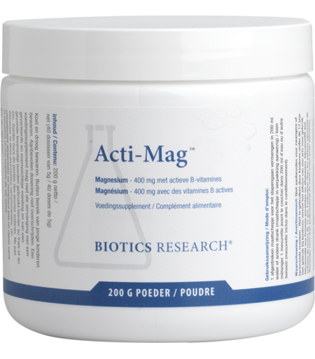Biotics Acti-Mag Poeder biedt een uitzonderlijk goede opneembaarheid en biologische beschikbaarheid van magnesium. Dankzij de krachtige synergetische formule die rijk is aan actieve B-vitamines, taurine en silicium, wordt de werking van magnesium optimaal ondersteund. Het bevat 400 mg elementaire ...
