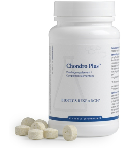 Biotics Chondro Plus Tabletten is een voedingssupplement met 90% gezuiverd chondroïtine met mangaan en vitamine B12. Toegestane claimsDe ingrediënten in Chondro Plus (voor 1 tablet) dragen bij tot:• Mangaan draagt bij tot de bescherming van cellen tegen oxidatieve stress• Mangaan draagt bij tot de ...