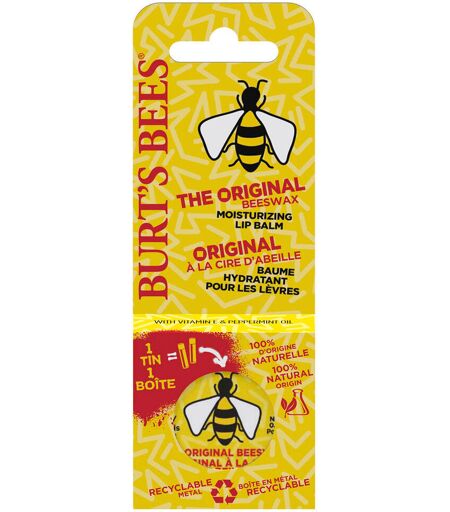 Deze hydraterende lippenbalsem hydrateert en verzorgt droge lippen de hele dag door. De balsem is verrijkt met krachtige, voedende bijenwas uit verantwoorde bronnen en vochtinbrengende vitamine E, rijk aan antioxidanten, waardoor de lippen zacht en glad aanvoelen. Het retroblikje is recyclebaar en bevat twee keer zoveel lippenbalsem als een Burt's Bees Lip Balm Stick voor maximaal waar voor je geld. Gebruik: Zo vaak als gewenst royaal aanbrengen, vooral bij droog, koud en/of winderig weer. ...
