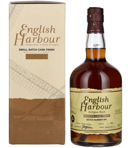 Engelse haven rum English Harbour MADEIRA CASK FINISH Small Batch Antigua Rum Batch 003 46% Vol. 0,7l in geschenkverpakking