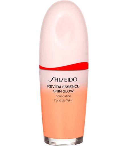 Een intens voedende foundation die de huid een gezonde gloed geeft. Dankzij gefermenteerde kefir en niacinamiden bevat de foundation evenveel effectieve huidverzorgende ingrediënten als een serum van SHISEIDO. Na slechts één week* gebruik is de huid zichtbaar egaler, gladder en gehydrateerd. Medium dekking. Gezonde en stralende finish. 12 uur fixatie**. 24H Moisture**. *: Consumententest met 109 vrouwen **: Klinisch getest op 31/27 vrouwen. Dermatologisch getest. Niet comedogeen. Geschikt voor alle huidtypes. Toepassing: Goed schudden voor gebruik.Houd het flesje schuin en druk de dispenser naar beneden om de foundation aan te brengen.Breng de foundation aan na de huidverzorging en verdeel de foundation vanuit het midden van het gezicht naar buiten toe.Breng meer lagen foundation aan om de gewenste dekking te bereiken.Reinig de dispenser na gebruik en plaats de dop terug. Het wordt aanbevolen om de foundation en producten met UV-bescherming samen te gebruiken. Tip: REVITALESSENCE SKIN GLOW Foundation kan op verschillende manieren worden aangebracht om verschillende effecten te bereiken. Voor een bijzonder egale finish brengt u REVITALESSENCE SKIN GLOW Foundation aan met de vingertoppen. De warmte van de vingertoppen maakt het gemakkelijk om de foundation over de huid te verdelen. Voor extra dekking gebruik je REVITALESSENCE SKIN GLOW Foundation met de DAIYA FUDE Face Duo Brush. Breng de foundation aan met de gelblender en meng met de diamantvormige kwast voor een egaal effect.Voor een vlekkeloze finish breng je REVITALESSENCE SKIN GLOW Foundation aan met de HASU FUDE Foundation Brush nadat je SYNCHRO SKIN SELF-REFRESHING Concealer hebt gebruikt. Brengvoor extra glans SYNCHRO SKIN Invisible Loose Powder Radiant aan met de MARU FUDE Face Brush na gebruik van de REVITALESSENCE SKIN GLOW Foundation.Tinten met een geel/gouden basis gaan roodheid tegen, terwijl tinten met een rood/roze basis bleke huidtinten egaliseren. ...