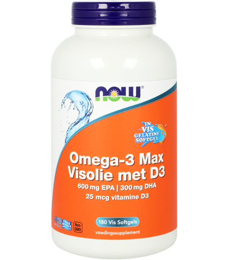 Now Omega-3 Max Visolie met D3 Softgels (180 stuks) is een geconcentreerd voedingssupplement met hoge vetzuurgehaltes. De softgels zijn gemaakt van visgelatine en bevatten 600 mg EPA en 300 mg DHA per softgel. Daarnaast is het aangevuld met vitamine D3, wat bijdraagt aan het behoud van sterke botten ...
